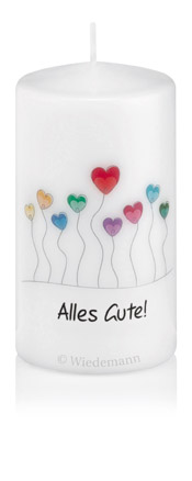Spruchkerze "Alles Gute!" mit Herzen Ø70mm x 130mm Höhe