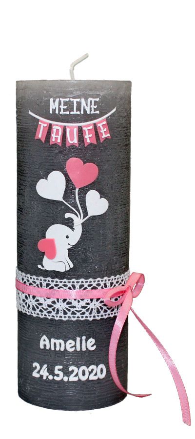 Neuheit - durchgefärbte Taufkerze in Rustik Optik